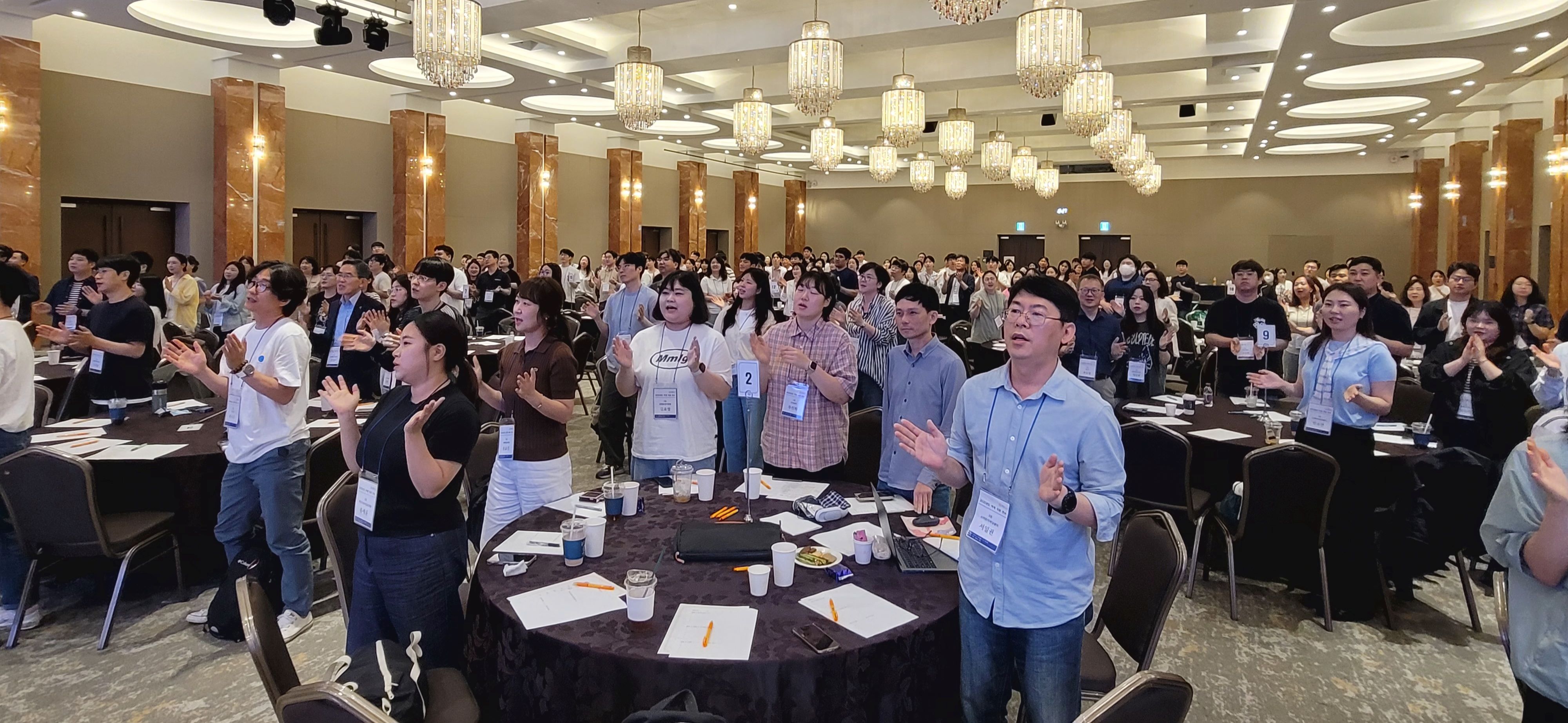 (아래)같은 날 한국기술교육대 교직원들이 ‘감사박수’를 치는 모습)