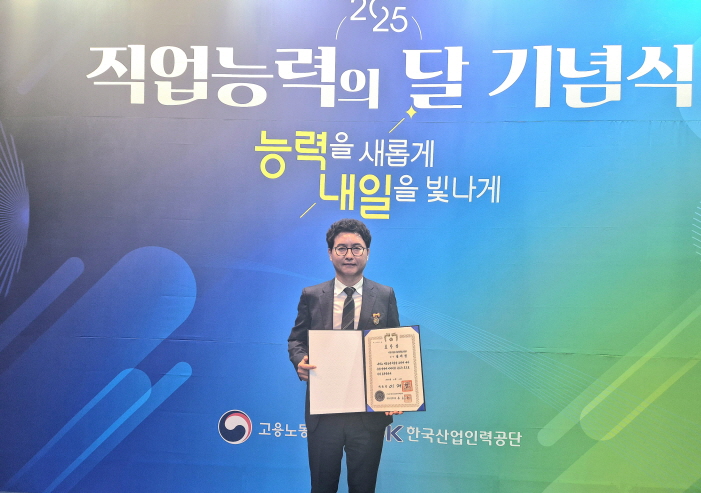 올해 9월 직업능력의 달 기념식에서 직업훈련교원 부문 대통령 표창을 받은 김세철 전문건설공제조합 기술교육원 교수. 이 상은 공공훈련기관, 민간훈련기관, 기업 내 교육 훈련시설 등에서 훈련생의 직업능력 향상과 훈련 교수법 개발연구에 노력하는 등 능력중심 사회 조성에 탁월한 공이 있는 자에게 수여하는 상이다.