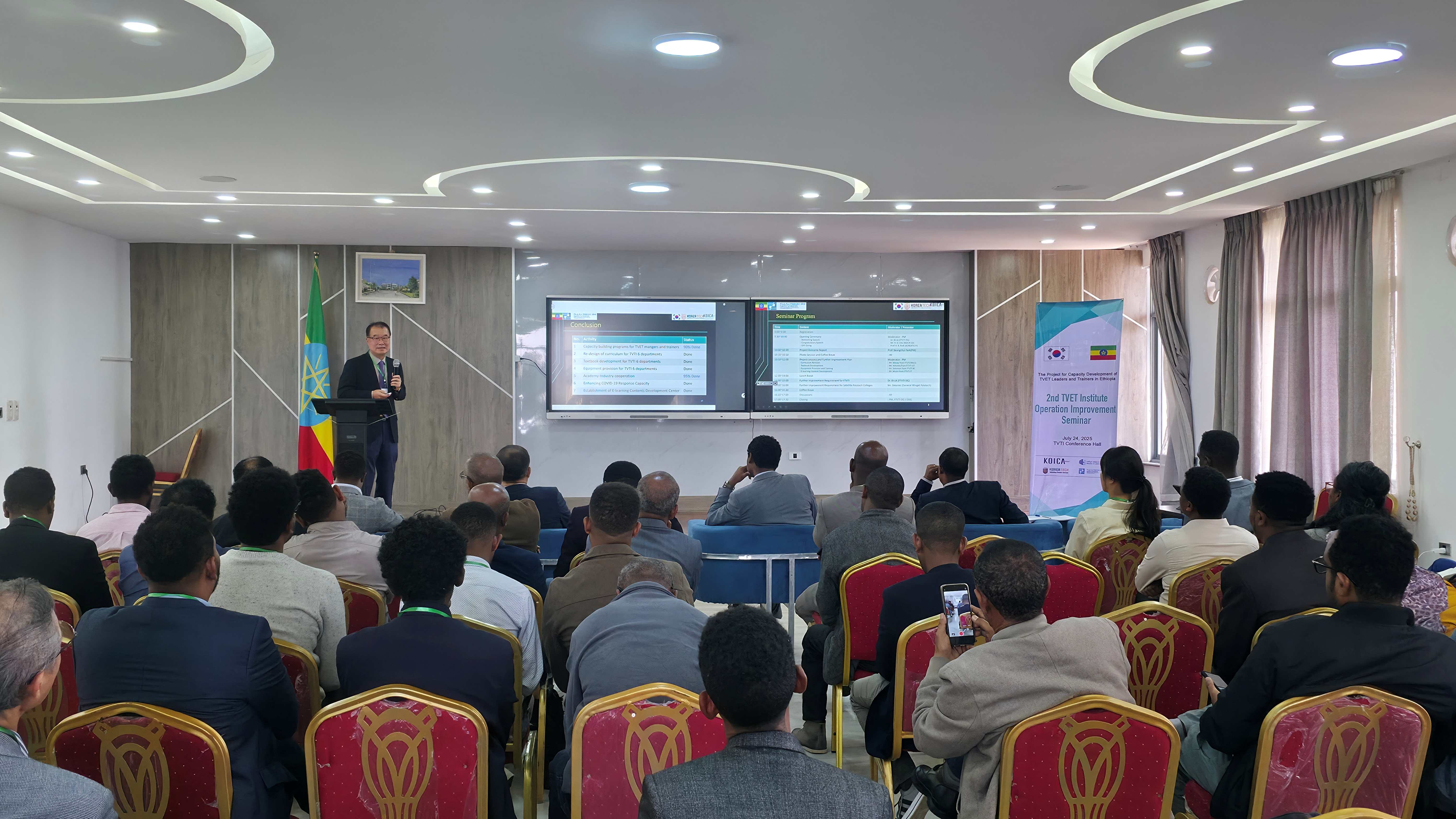 ▲ 한국기술교육대 개도국기술이전연구소가 24일 에티오피아 연방직업기술훈련원 본관에서 ‘2차 기관 운영 개선세미나’를 성공적으로 개최했다.